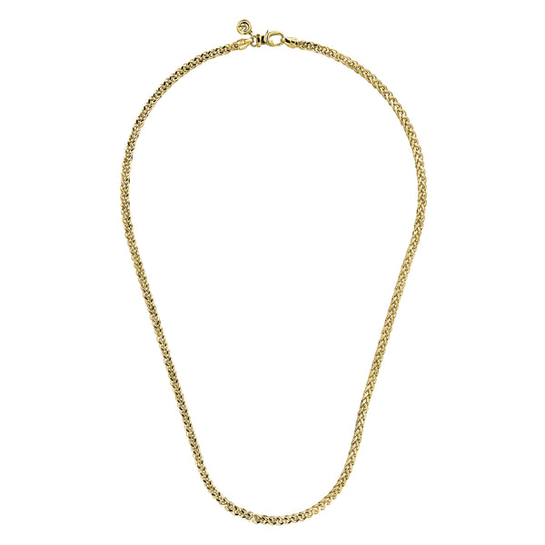 20 Inch 3.2mm 14K Yellow Gold Hollow Men's Wheat Chain Necklace