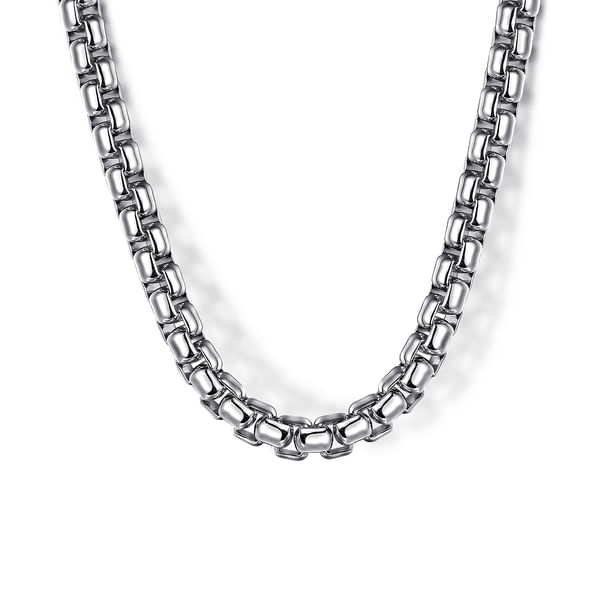This 22-inch round box chain in sterling silver measures 4mm in width, with rectangular links shaped for a rounded, comfortable fit. Finished with a high polish and secured by a lobster lock, it’s built for everyday wear.Item CodeNKM2141-22SVJJJDivisionGabriel Men SilverCollectionClassicStyleChainMetal Type925 SilverChain Length22.00 in -