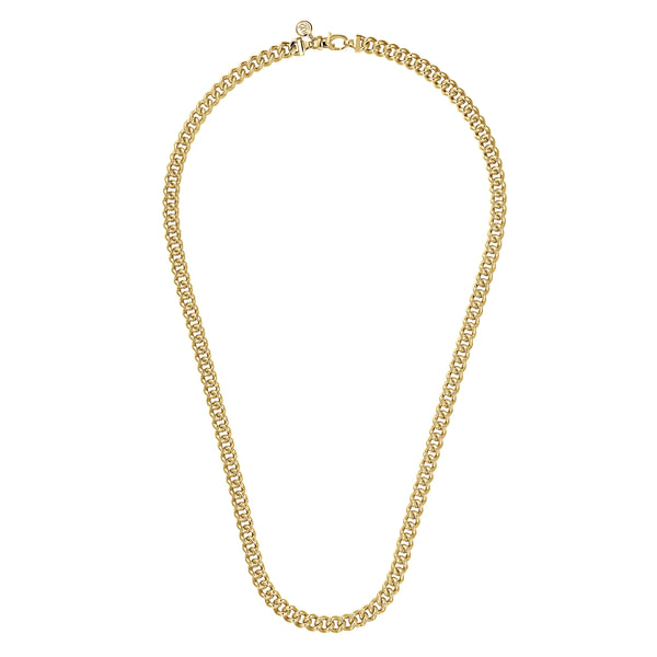 22 Inch 7mm 14K Yellow Gold Men's Solid Cuban Link Chain Necklace