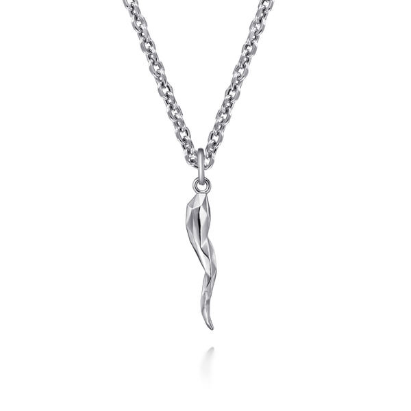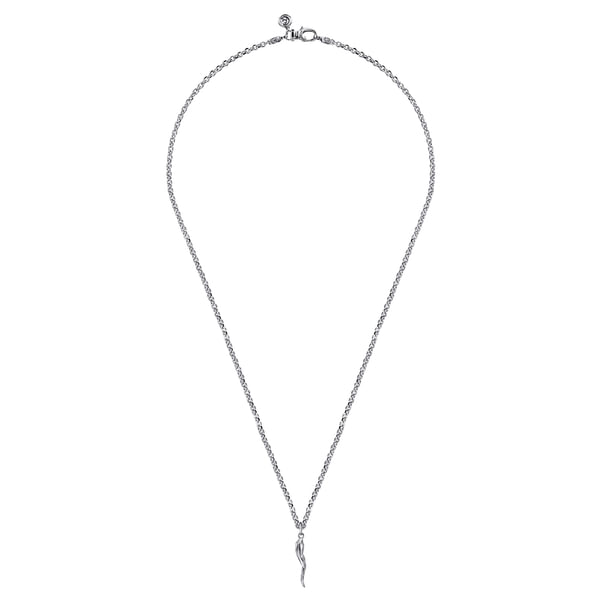 22 Inch 925 Sterling Silver Italian Horn Pendant Necklace