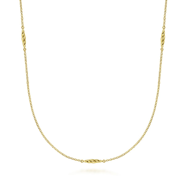 32 inch 14K Yellow Gold Chain Necklace with Twisted Tube Stations