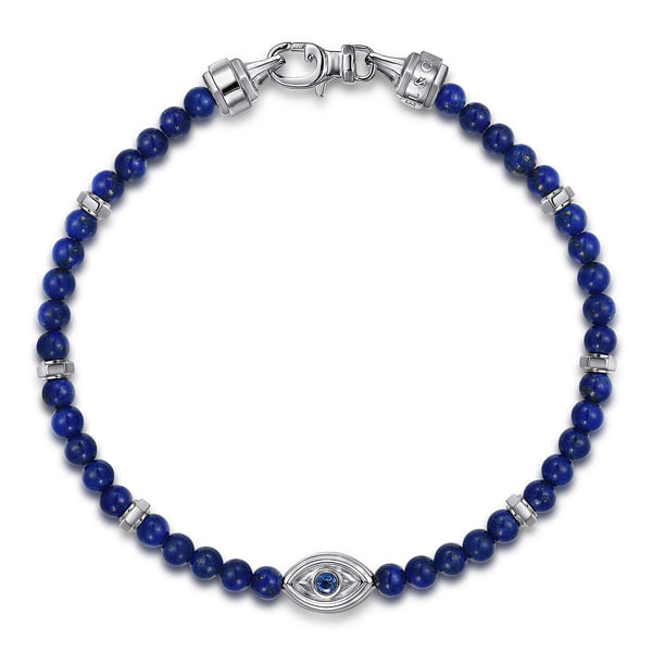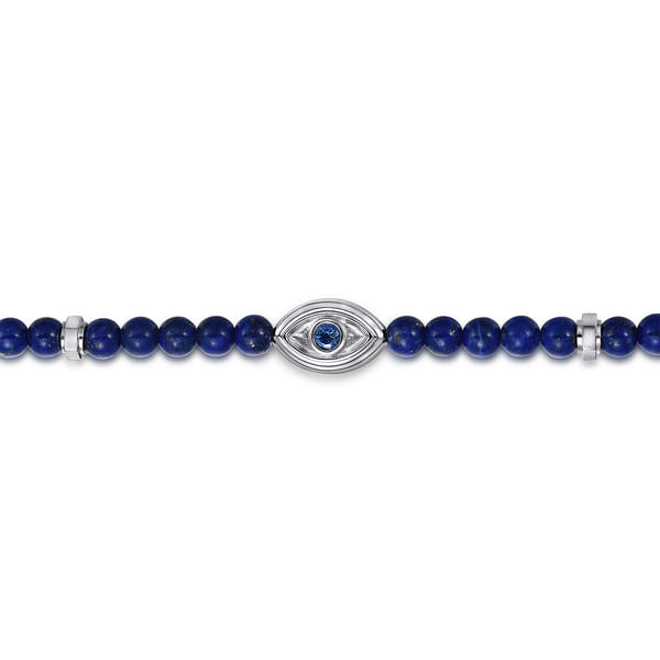 925 Sterling Silver 4mm Lapis and Sapphire Beaded Bracelet with Evil eye