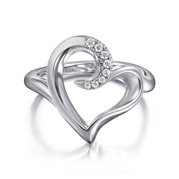 925 Sterling Silver Asymmetrical Open Heart White Sapphire Ring