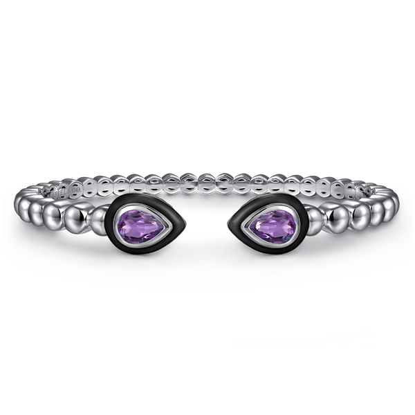 925 Sterling Silver Bujukan Amethyst Open Bangle Bracelet with Black Enamel