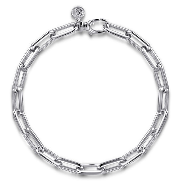 With its elongated rectangular links, this sterling silver bracelet creates a clean, contemporary silhouette. A polished finish brings out its shine, and the lobster clasp with engraved charm completes the look with a final note of refinemnent.Item CodeTBM2036-85SVJJJDivisionGabriel Men SilverCollectionClassicStyleChainMetal Type925 Silver -