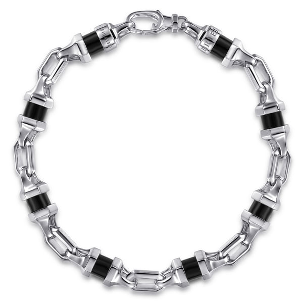 925 Sterling Silver Onyx Cylinder Beaded Mens Bracelet