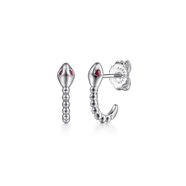 Serpentina - 925 Sterling Silver Snake Bujukan Ruby J Hoop Stud Earrings