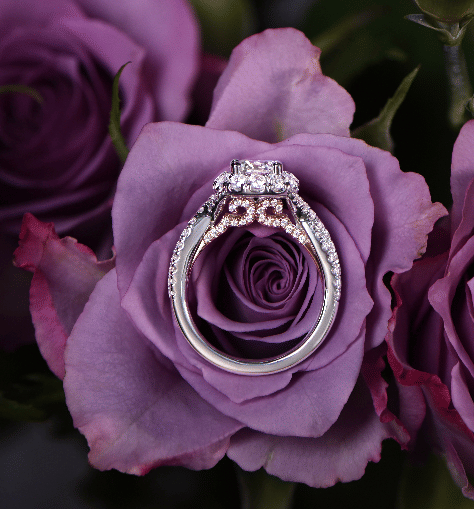 Low setting vintage style engagement rings look great in this type of setting but this is not a hard set rule. Because these settings tend to be more ornate, the center stone is not the only attraction; the overall setting and stone together make the statement. Low set engagement rings are generally preferred by those with a more active lifestyle or hands-on career, because you’re less likely to scratch the stone or hit the ring on hard surfaces. The stone is also less prone to get damaged as it is well set inside the setting and so better protected. The cons to this setting is that the stone brilliance is not maximized and the stone, especially if small, can get lost inside the setting.