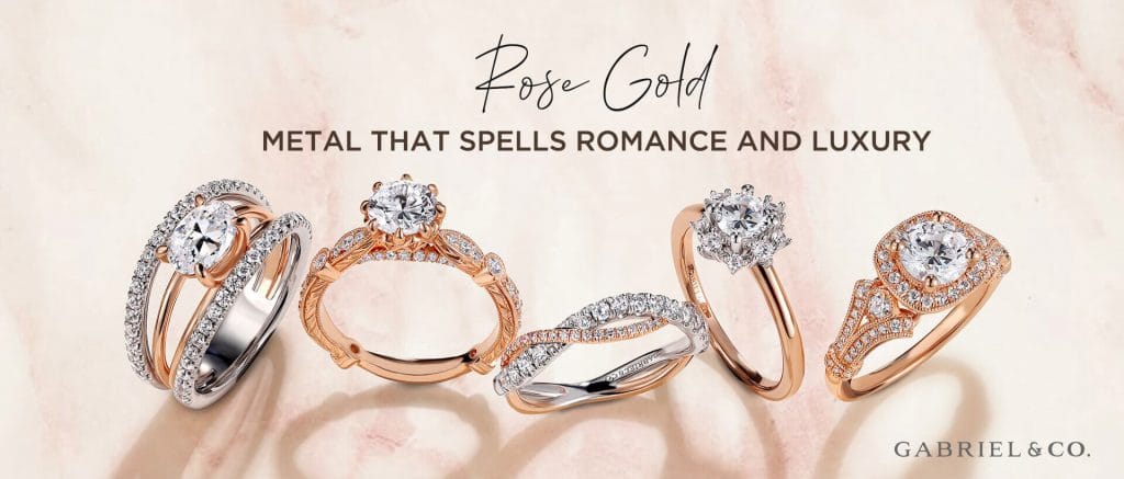 If contemporary rose gold hues are too pink for you, you might enjoy the more subtle, coppery tones of the Victorian and early 20th- century rose gold jewelry. Gabriel & Co’s broad selection of rose gold hues and designs will add that extra layer of brightness to your dream summer look.