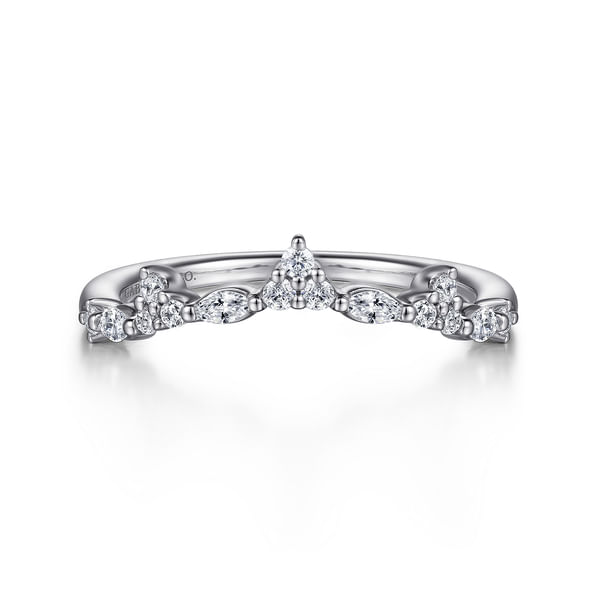 Curved 14K White Gold Marquise and Round Diamond Anniversary Band - 0.23 ct