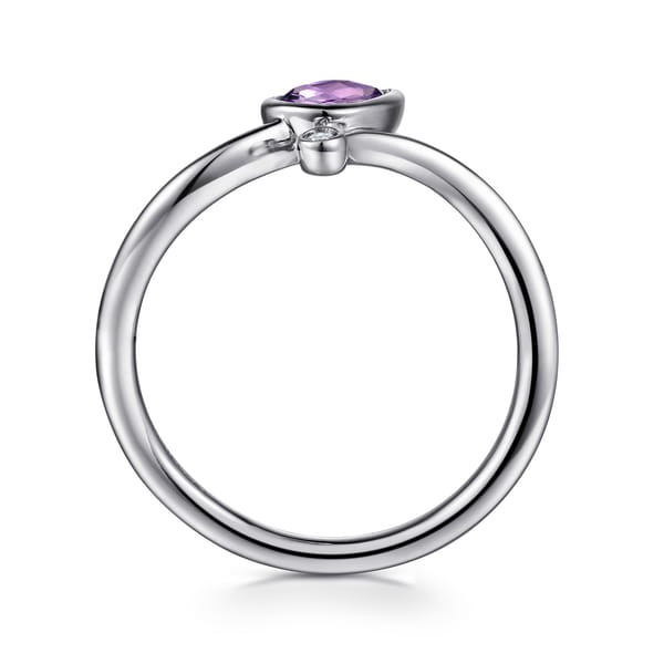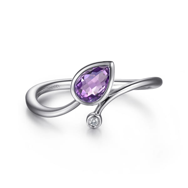 925 Sterling Silver Diamond and Amethyst Teardrop Bypass Ring