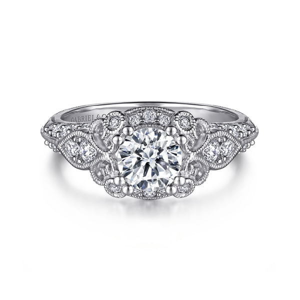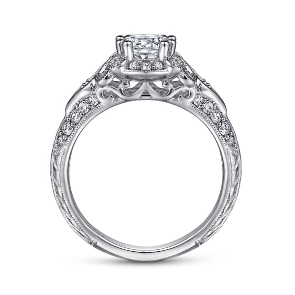 Abel - Unique 14K White Gold Vintage Inspired Diamond Halo Engagement Ring