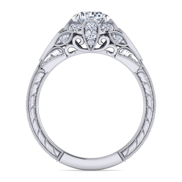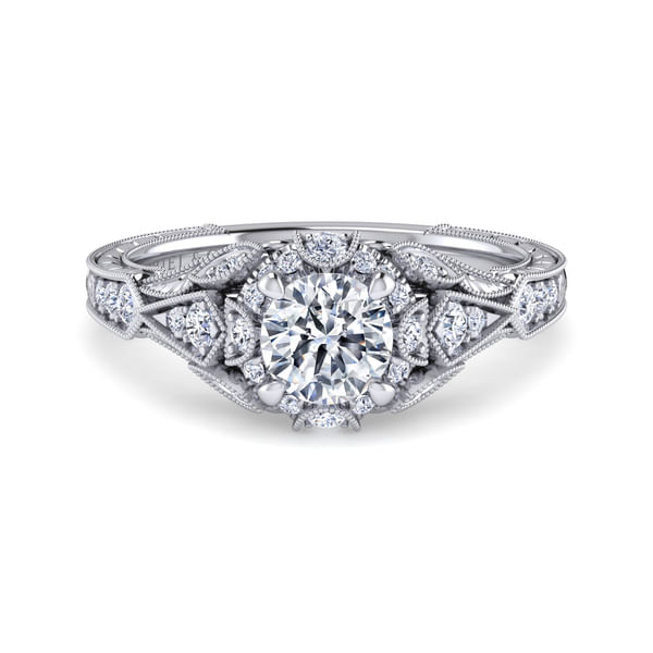 Annadale - Unique 14K White Gold Vintage Inspired Diamond Halo Engagement Ring