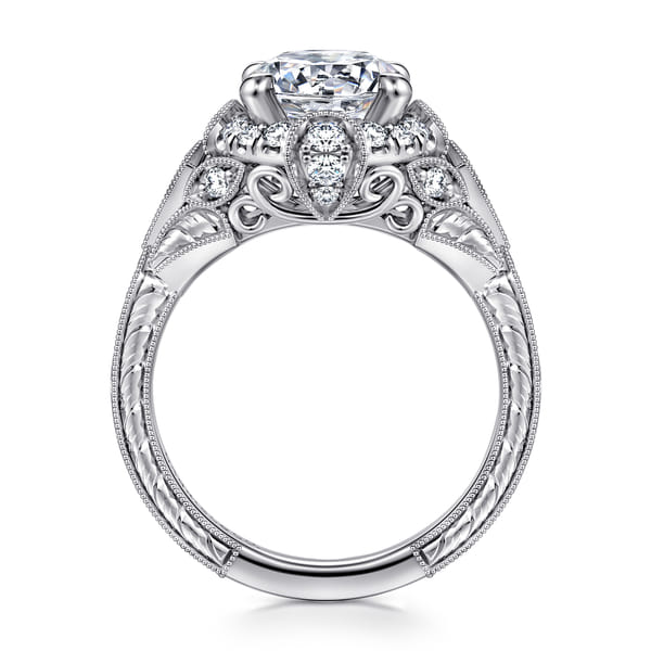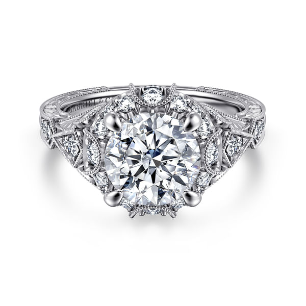 Annadale - Unique 14K White Gold Vintage Inspired Diamond Halo Engagement Ring
